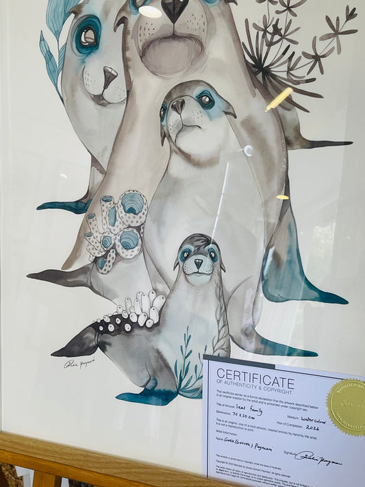 Seal family original ink illustration