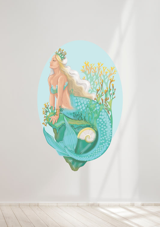 Mermaid on the rock fabric wall decal
