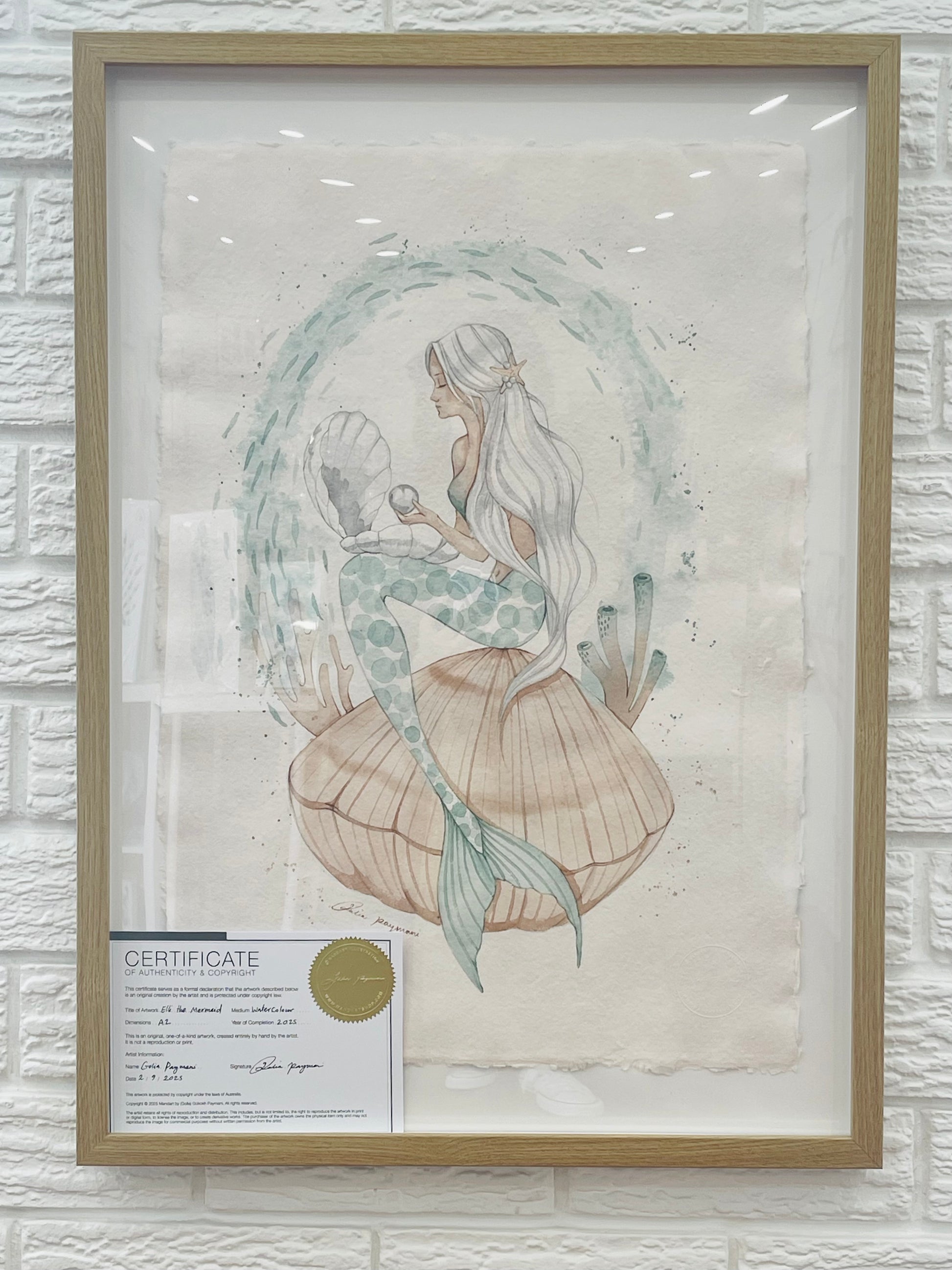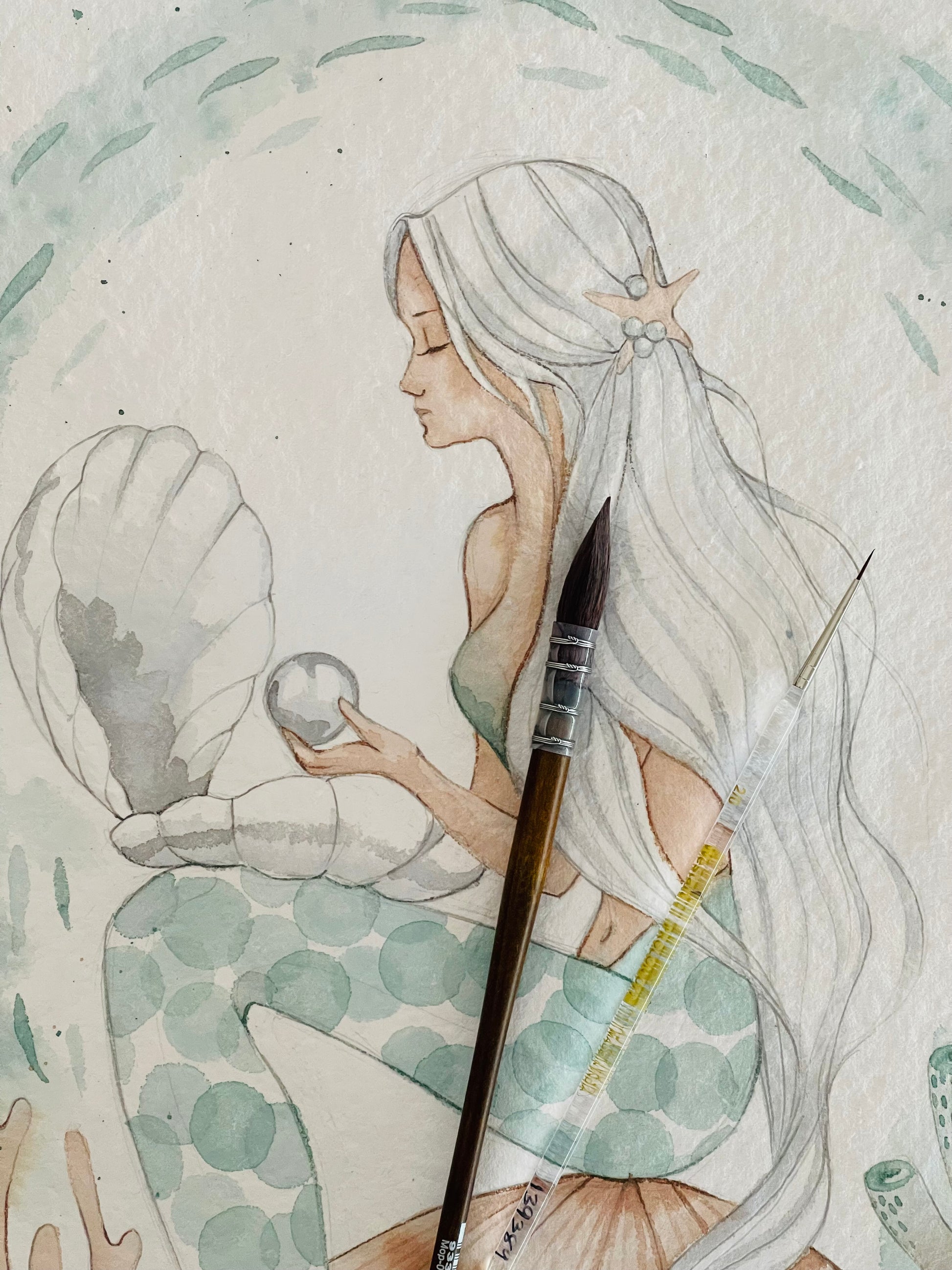 Elli the mermaid original watercolour illustration by Golia Paymani