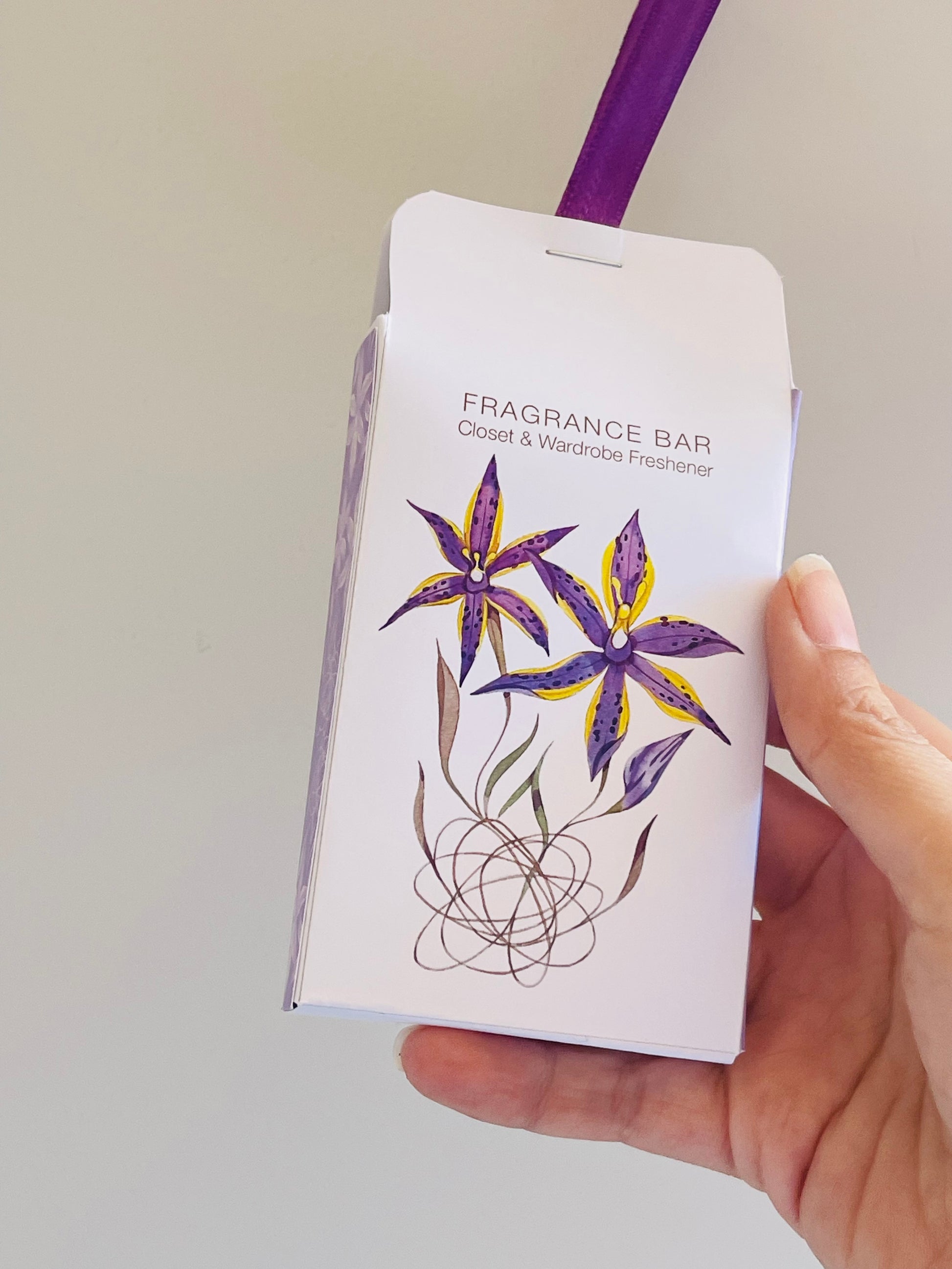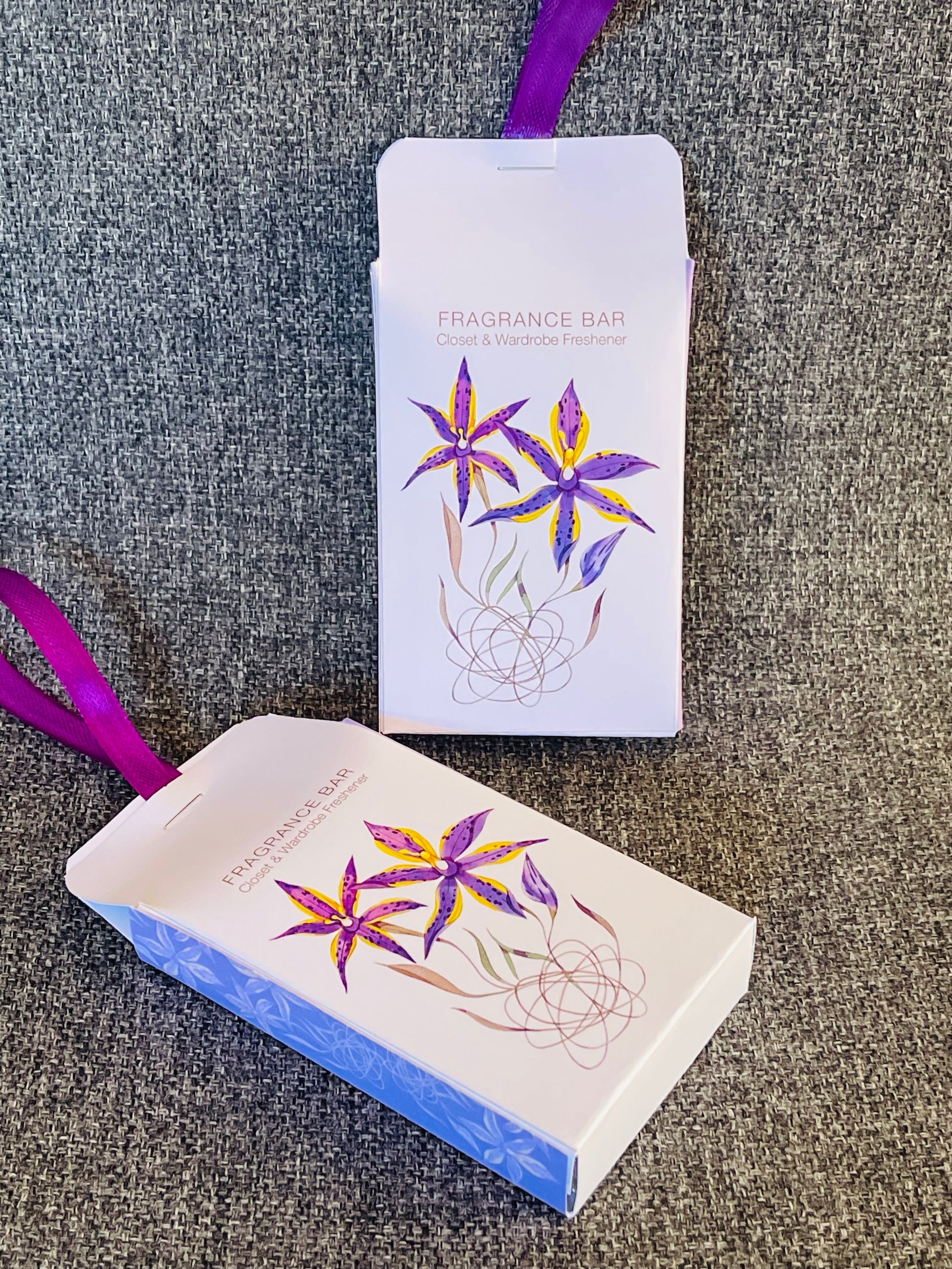 Enhance your wardrobe with our Mandart fragrance bars, uniquely designed and printed in our studio. Featuring watercolour illustrations of Australian wild orchids by Golia Paymani, these closet and wardrobe fresheners will leave your clothes smelling beautiful. Choose from two available designs and fragrances. Add a touch of luxury to your daily routine with our fragrance bars.