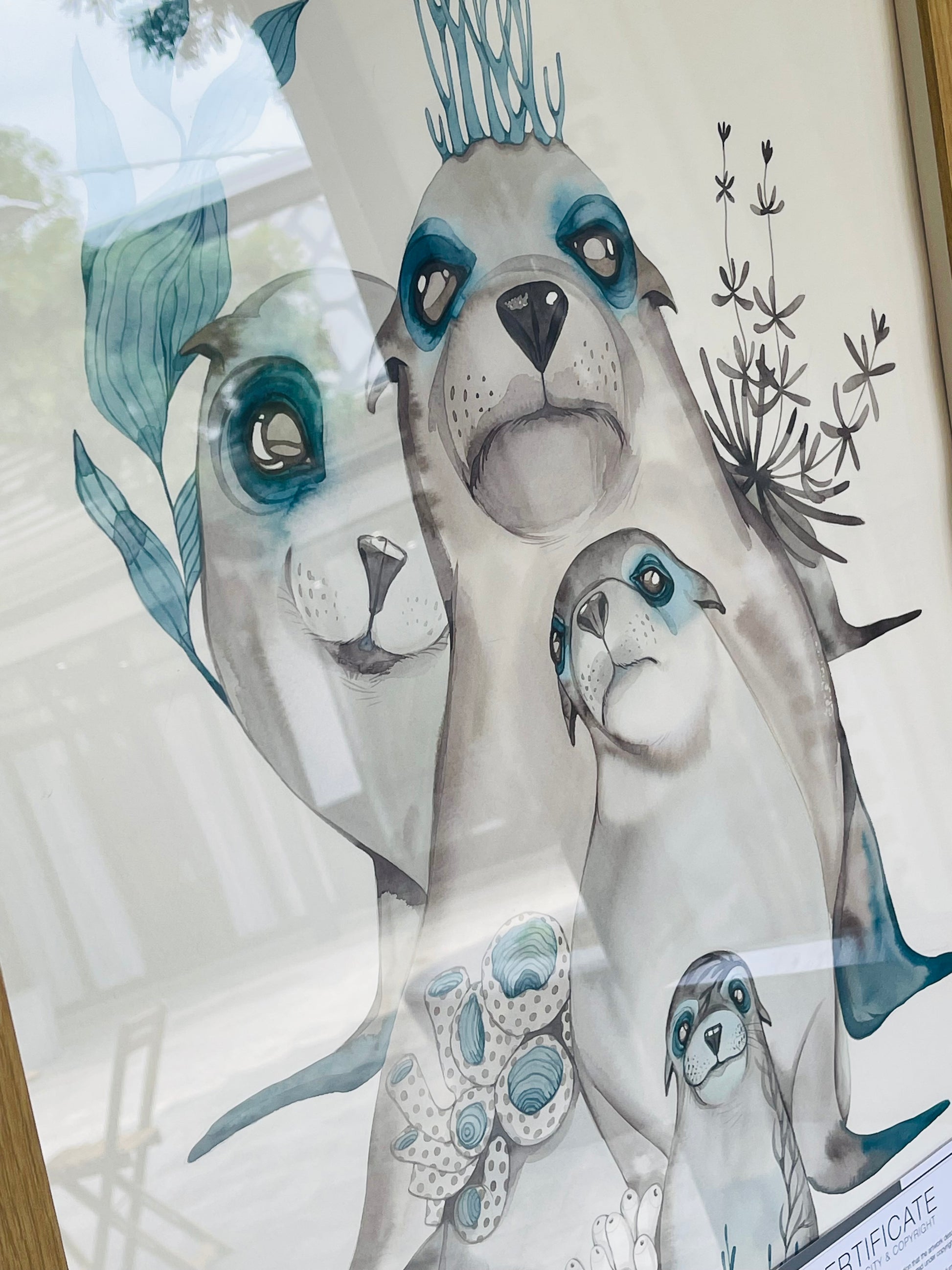 Seal family original ink / watercolour illustration by Golia Paymani.